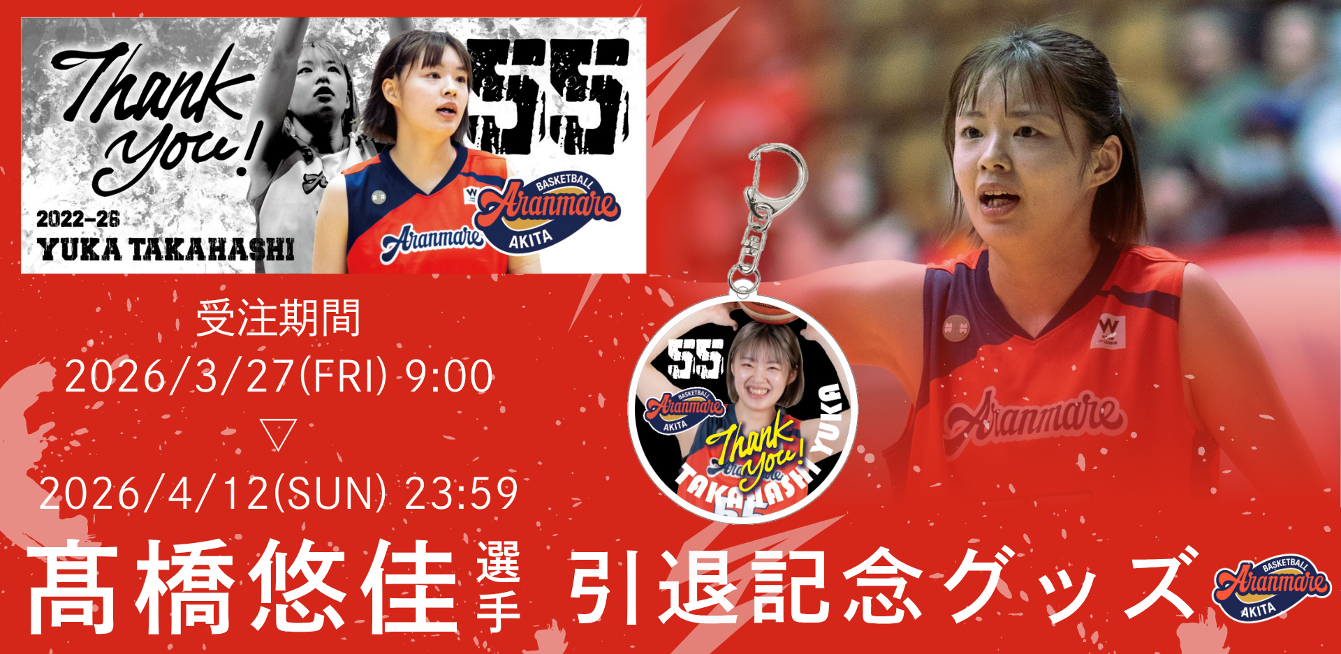 2025-26シーズンをもって現役を引退しました、髙橋悠佳選手の引退記念グッズの受注販売を