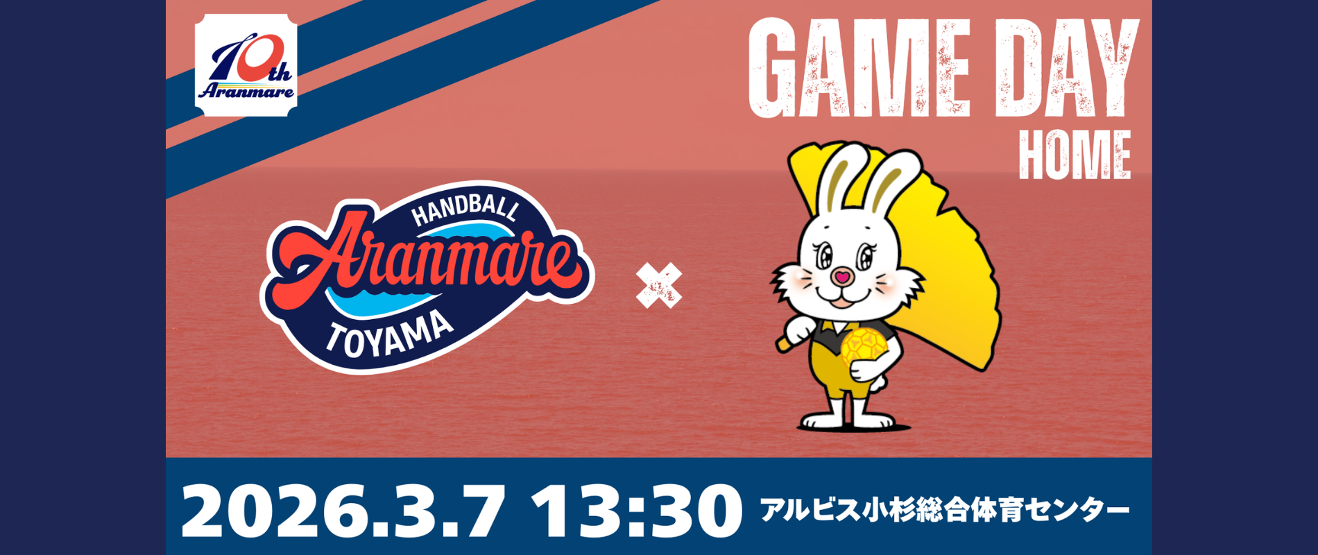 NEXT GAME GAME RESULT アランマーレ富山 29 2026.3.7(SAT) 2025-26 LEAGUE H 15-11 14-7 大阪ラヴィッツ 18 試合結果詳細はこちらから▶ PICK UP NEWS 2026年2月26日 イベント hummel(ヒュンメル)との国際女性デー企画実施のお知らせ いつもアランマーレを応援いただきありがとうございます。 アランマー・・・ ▶この記事を読む 2026年2月18日 イベント オークション企画「UPCYCLE AUCTION」開始のお知らせ いつもアランマーレを応援いただきありがとうございます。  ・・・ ▶この記事を読む 2026年1月27日 新着情報 KUROBEアクアフェアリーズ富山様との事業連携協定書の締結および 「TOYAMA TOPSPORTS SISTERS」プロジェクト始動のお知らせ アランマーレ富山は、富山県黒部市を拠点とするSV.リーグ所属の女子バレーボールチ・・・ ▶この記事を読む FANCLUB TEAM