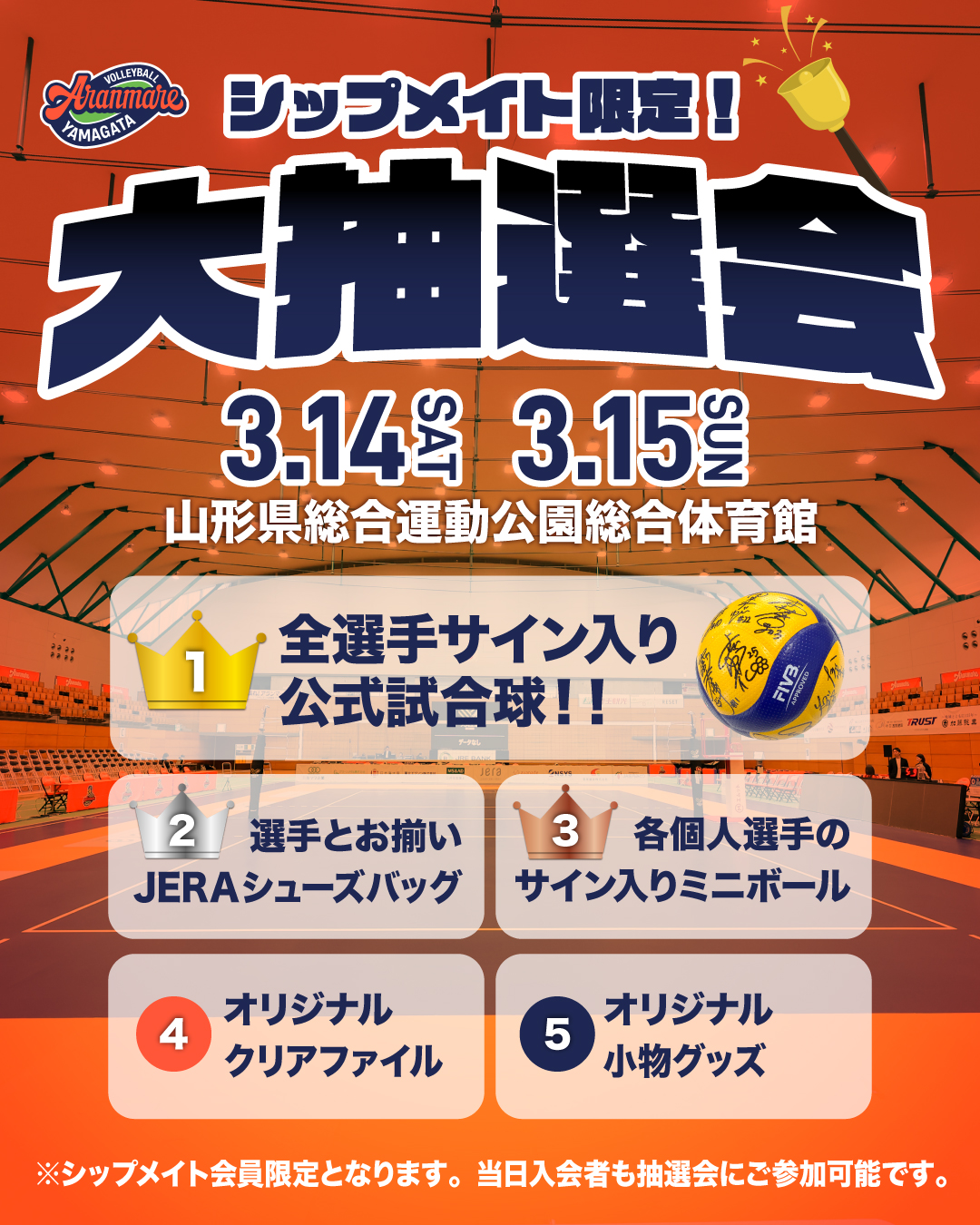 アランマーレ山形を楽しみたい方、さらに応援したい方は、ぜひSHIPMATE CLUBへご入会ください!!
