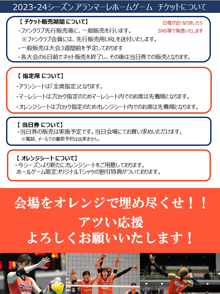 ◆【2023-24 Vリーグ 1部】ホームゲーム チケットのご案内◆