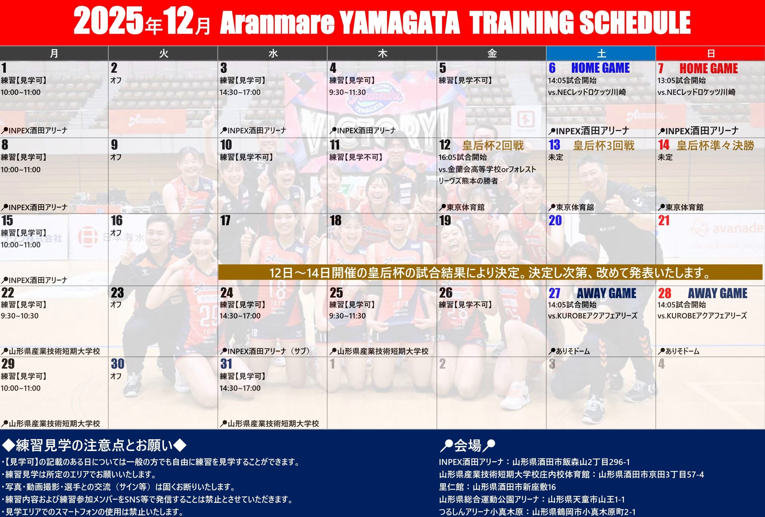 2025年11月28日 / 最終更新日 : 2025年11月28日 admin チームについて 12月の練習スケジュールについて 2025年12月の練習スケジュールをお知らせいたします。 なお、練習スケジュールは急遽変更になる場合がございますので、最新情報はチーム公式Xでご確認ください。